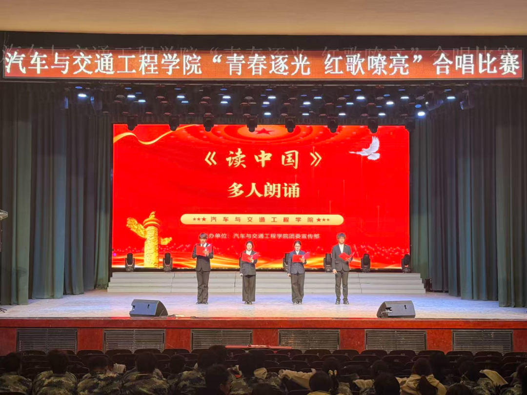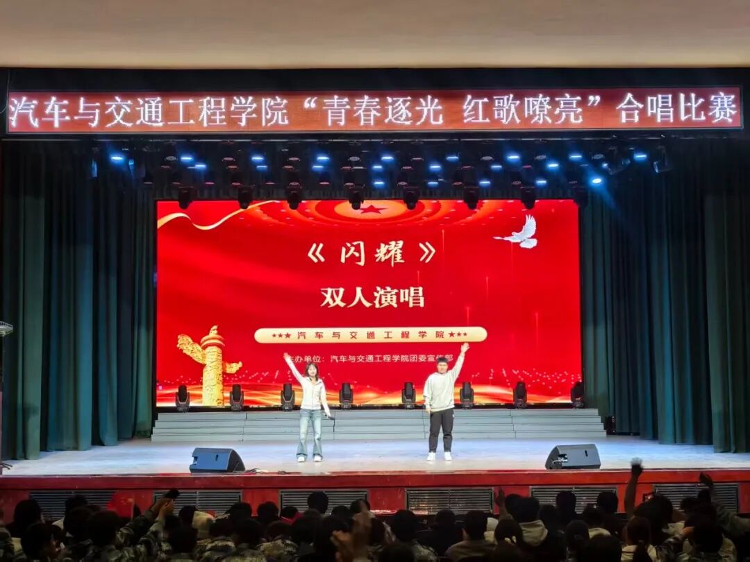为展现学子青春风采,营造积极向上的校园文化氛围。10月26日晚,汽车与交通工程学院在校礼堂举办“青春逐光,红歌嘹亮”合唱表演活动。我院党委副书记兼副院长刘东琳、团委书记兼2022级辅导员赵璐、2025级辅导员王天润与第十八届校学生会主席吕晓寰及2025级同学参加了本次活动。