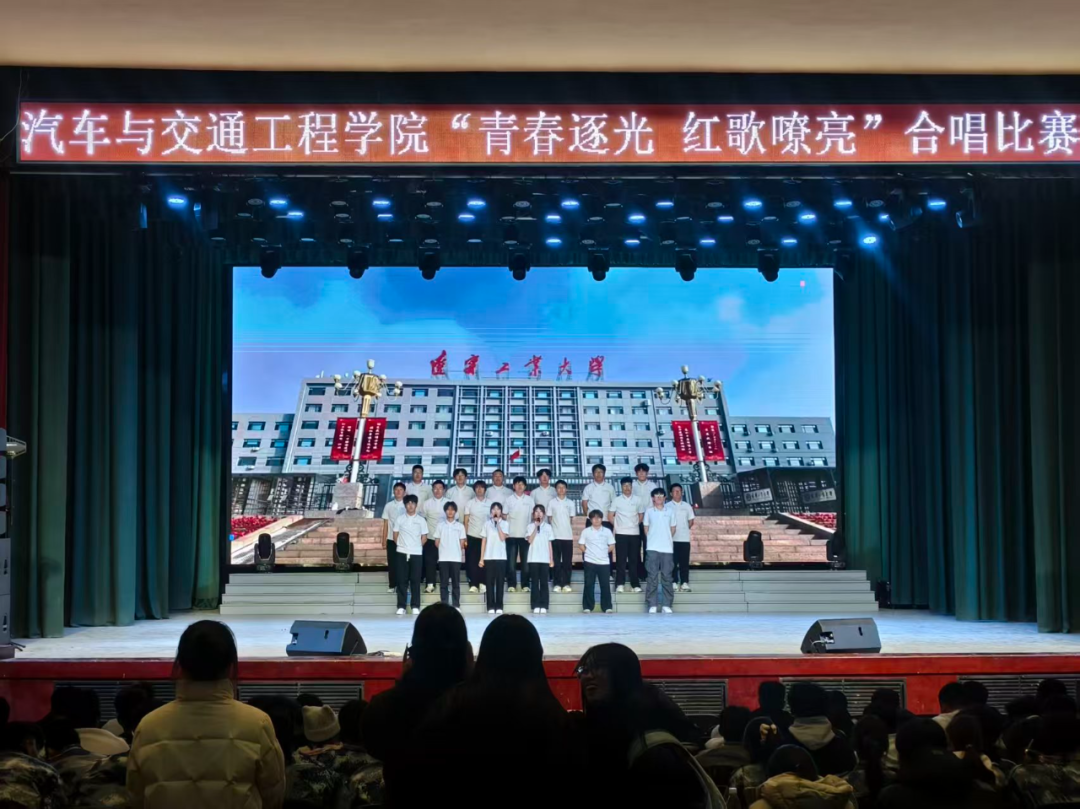 活动在新汽252班激昂的合唱《国家》中拉开序幕,瞬间点燃全场。新汽251班的《当那一天来临》、车辆254班的《黄河大合唱》,以铿锵与坚定歌声,诠释青年的使命与对家国的热爱;车辆253班的《我爱你中国》深情唱响,引发全场强烈的爱国共鸣。车辆251班、新汽253班、交运251班接连带来《万疆》《我和我的祖国》《歌唱祖国》等曲目,或铿锵有力,或掷地有声,持续掀起高潮。车辆255班、标准化251班以《光荣与梦想》《夜空中最亮的星》展现昂扬风貌,车辆252班、交运252班用《篇章》和《强军战歌》为合唱环节画上完美句点。